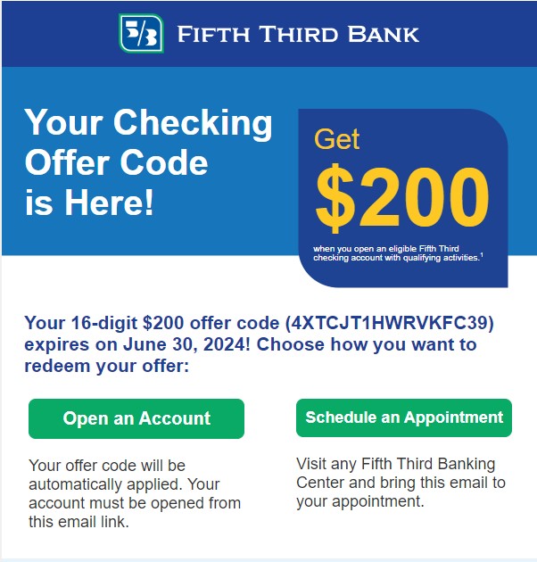 Residents of Ohio, Indiana, Kentucky, Michigan, North Carolina, Florida, Georgia, Tennessee, South Carolina, West Virginia, and Illinois can get $200 from Fifth Third Bank, all you need to do is: