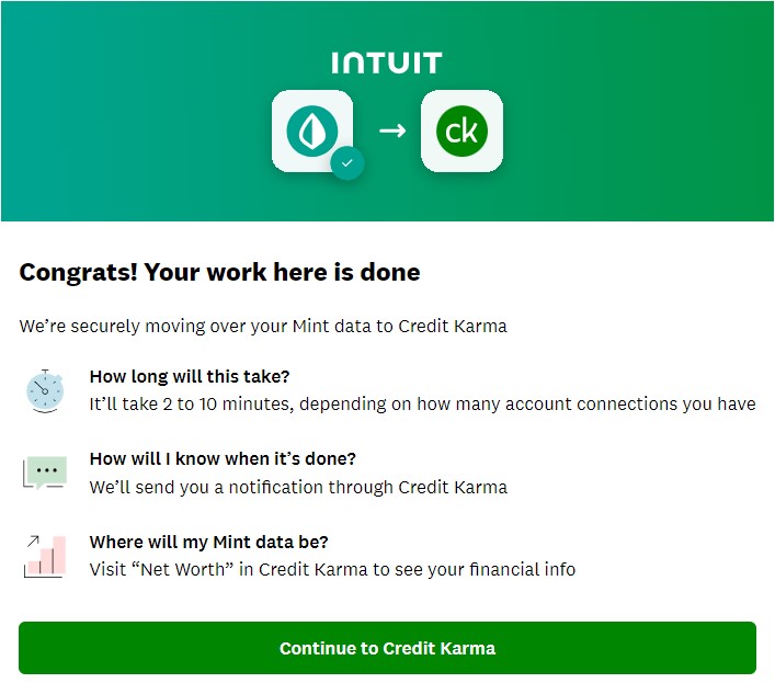 But one option that should be considered is making that migration. If it’s seamless and offers the same services as Mint, it seems like a no-brainer, especially since Credit Karma is free.