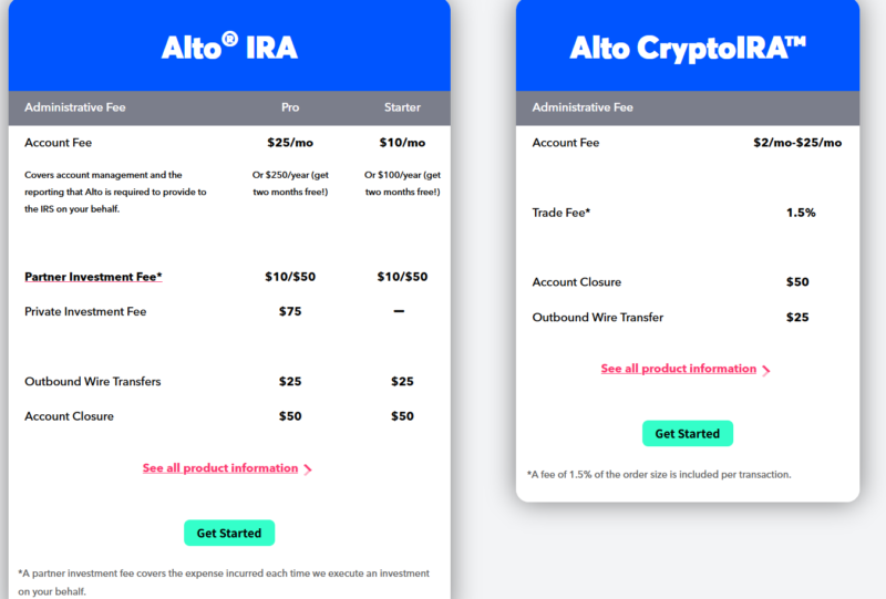 AltoIRA offers two plans, AltoIRA – which comes in Pro and Starter versions – and AltoCryptoIRA.