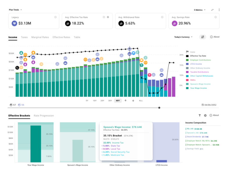 You can create beautiful financial plans with a level of nuance and flexibility that exceeds the standard online retirement calculators, run Monte Carlo simulations, backtest on historical data, review detailed analytics for estimated taxes, plan how to live life on your terms, and with some luck, reduce anxiety around your finances.