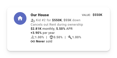Let’s see what happens if we purchase a house around the time Kid #2 arrives for about 4x our annual income.