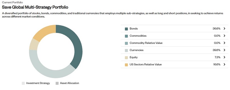 - Save Global Multi-Strategy Portfolio – “The Global Multi-Strategy portfolio seeks to generate returns across market regimes by combining 6 sub-strategies, built using a cutting-edge quantitative approach that exploits how financial markets respond to themes and patterns, or ‘narratives’.”
