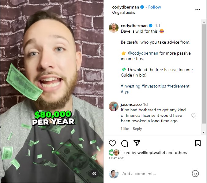 Then he, essentially, finishes by saying that a million dollar nest egg should create an $80,000 annual income perpetually.