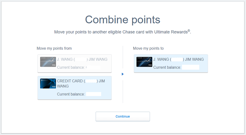 Next, to make the transfer, you want to log into your Chase Travel account. Then click on the three lines again to open the menu, at the very bottom you should see Combine Points. You’ll see a way to move your points pretty easily and that process is near instant.
