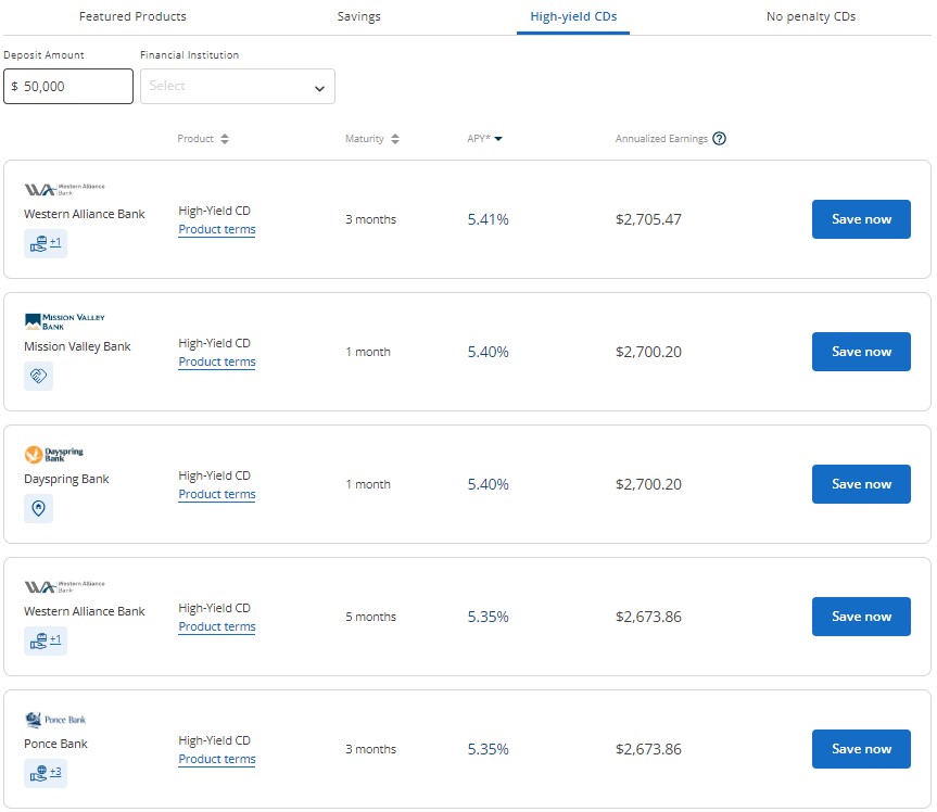 You can compare rates for these banking products: