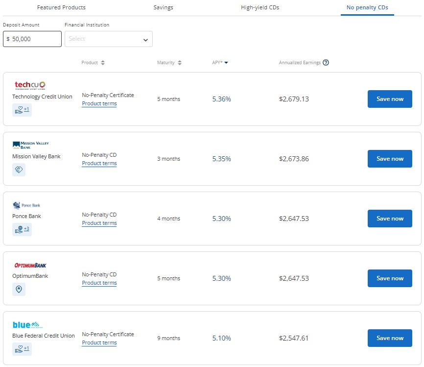 - No Penalty CDs
