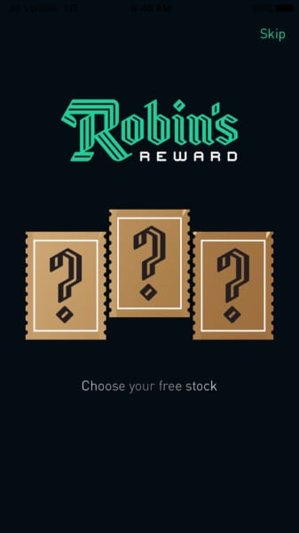 Then you get to a screen where you “pick” three stocks (part of Robinhood’s gamification):