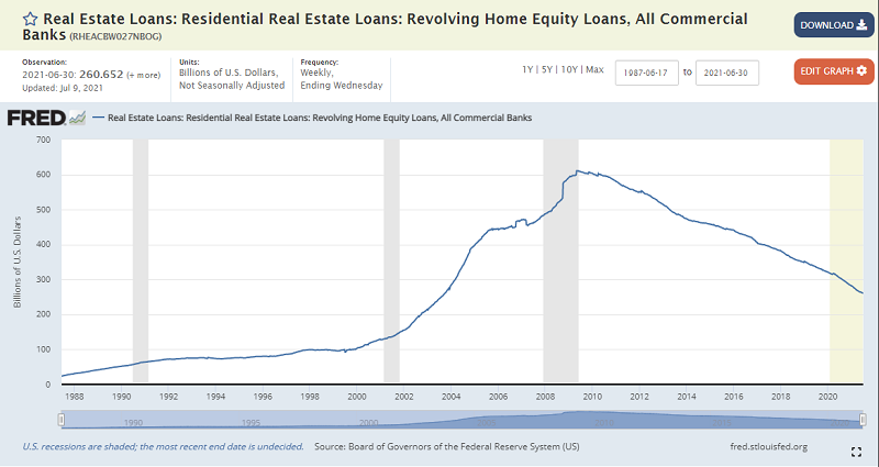 There are over $263 billion revolving home equity loans according to The Federal Reserve (data is from July 9th, 2021):