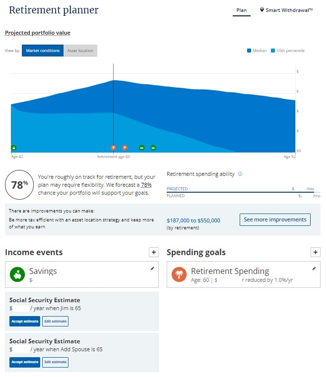 I use Personal Capital for account aggregation and retirement projections. Although the Retirement Planner indicates it applies a tax rate to the projection, I don’t know if they include it in the Annual Retirement Spending. Tax payments are not broken out on the Detailed Cash Flow table.