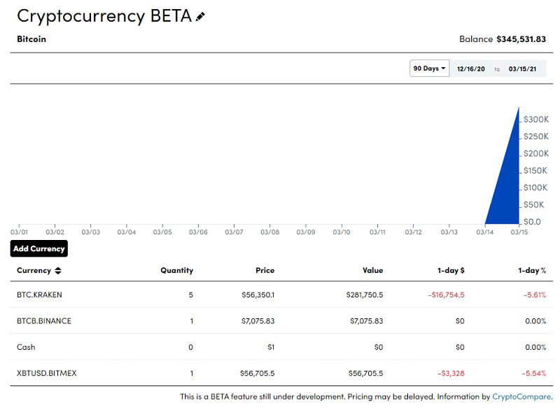 If you have cryptocurrencies, this is a convenient way to integrate them into your dashboard. I don’t think many, if any, other services off this yet.