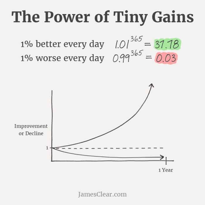 I’ll leave you with one final example from someone I met years ago before he became the guru of habits because it explains exactly this principle but in a different realm. James Clear’s article on Continuous Improvement explains how 1% improvement seems so so small but over time can be massive (he didn’t always write about habits but he was always pretty rock solid with words).