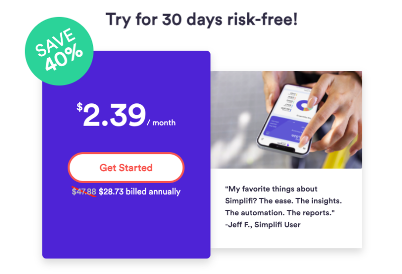 First, you can try Simplifi completely free for the first 30 days. Take a trial run, and if you like it, you can sign up for the service. As of writing, Simplifi is offering annual plans for $28.73, which is 40% off the regular price.