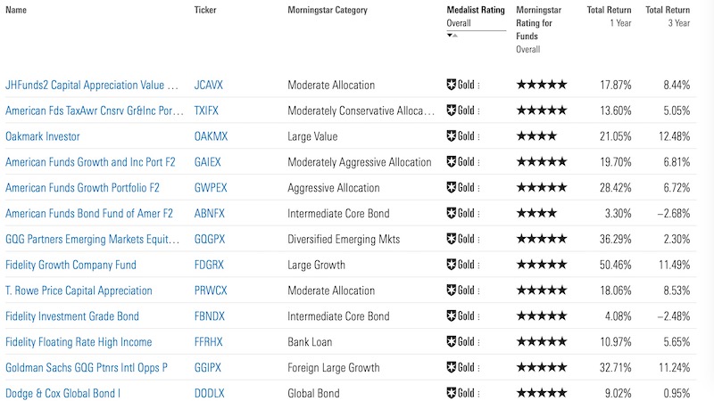 Now that you understand how the ratings work, here is how they become useful when you are an investor. You can start your search by filtering out funds that don’t meet a certain Morningstar rating or Morningstar Analyst rating.For example, their list of Medalist Funds are those who have earned a medal – bronze, silver, or gold: