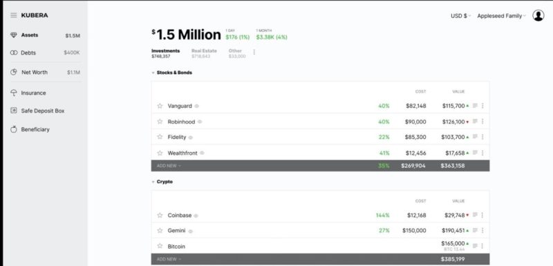 - Kubera: For All-In-One Net Worth Tracking