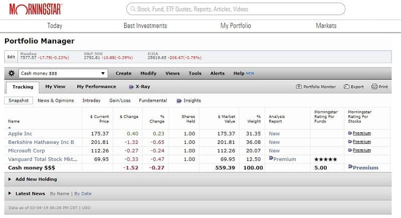 Check out Morningstar Portfolio Manager
