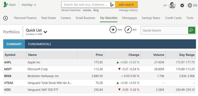 Like most of the other platforms on this list, MSN Money is free to use. It’s available on the web, as well as on iOS and Android mobile devices.