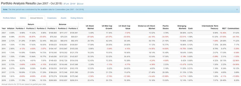 One of the biggest advantages it offers is the ability to backtest portfolios. You can run three separate asset allocations at a time, making it much easier to find which one will work best for you. They offer backtesting allocations going back to 1972 (though the analyzer only seems to go back to 1995).