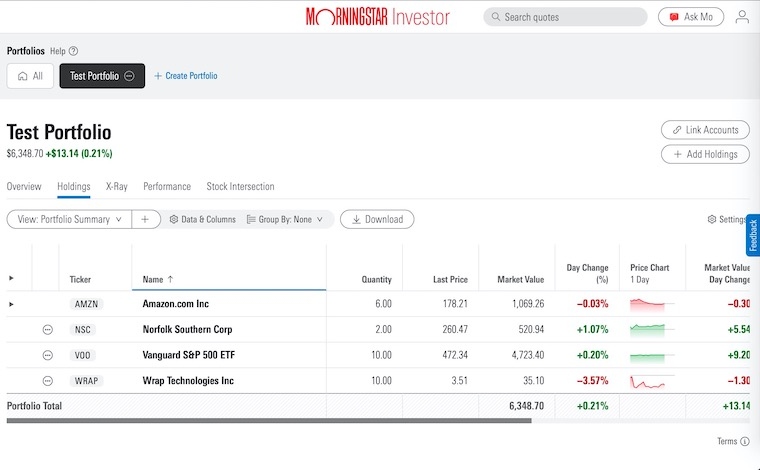 It’s possible to link to your existing brokerage accounts to track your portfolio performance and see applicable Morningstar ratings.